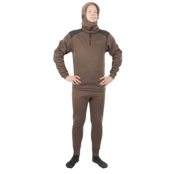230г/м2, флис с добавлением нейлона и спандекса, что обеспечивает ему высокую прочность и долговечность, а также позволяет хорошо растягиваться и плотно прилегать к телу. Можно использовать как второй слой, одевая поверх тонкого термобелья. Предназначено для рыбаков, охотников и туристов в очень холодную погоду. Футболка с воротником-стойкой на молнии.