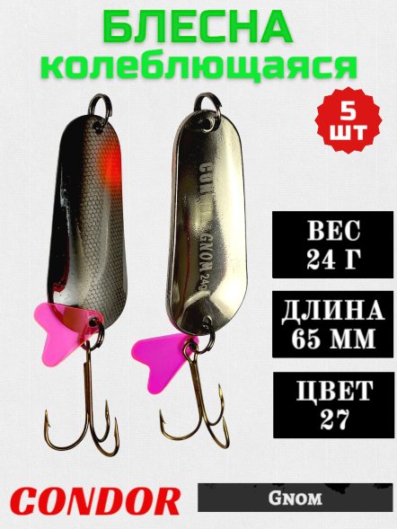 Характеристики товара "Блесна колеблющаяся Condor Gnom 2 размер 65 мм вес 24 г цвет 27 5 шт" можно посмотреть перейдя по ссылке.